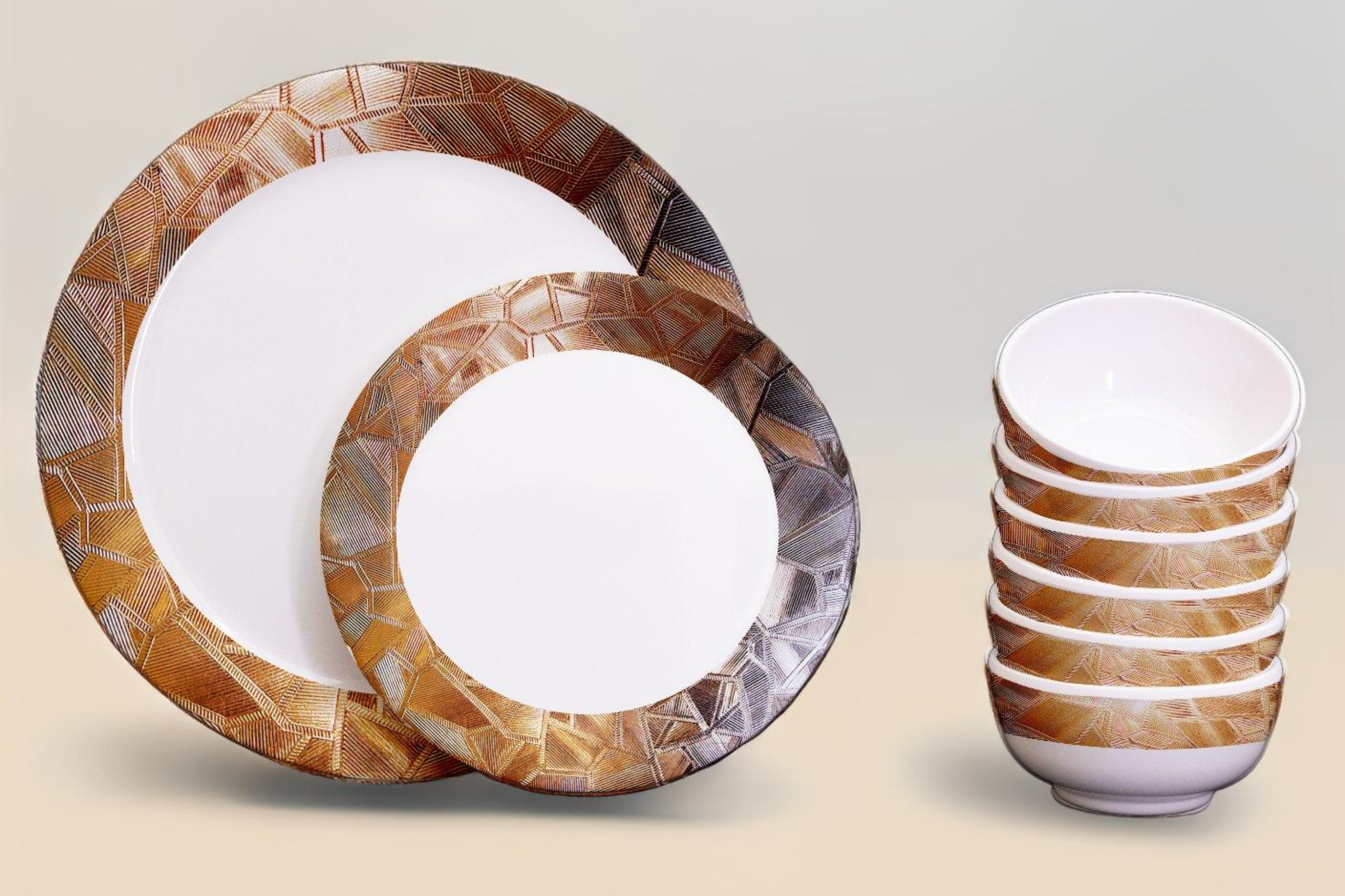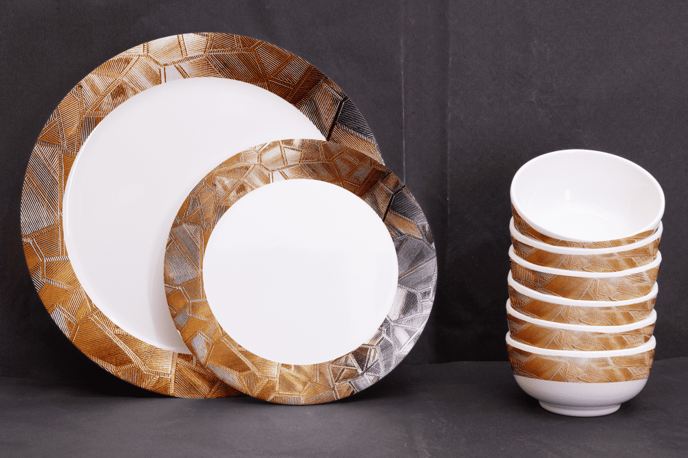 The Featwell Aura Dinnerset stands out with its sophisticated design featuring a subtle, embossed pattern that adds a touch of luxury to any table setting. The sleek white finish complements any kitchen decor, making it ideal for both everyday meals and special occasions.